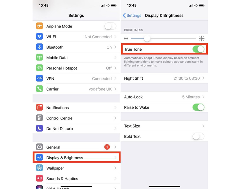 Bạn có thể điều chỉnh bằng cách khởi động tính năng True Tone của iPhone X