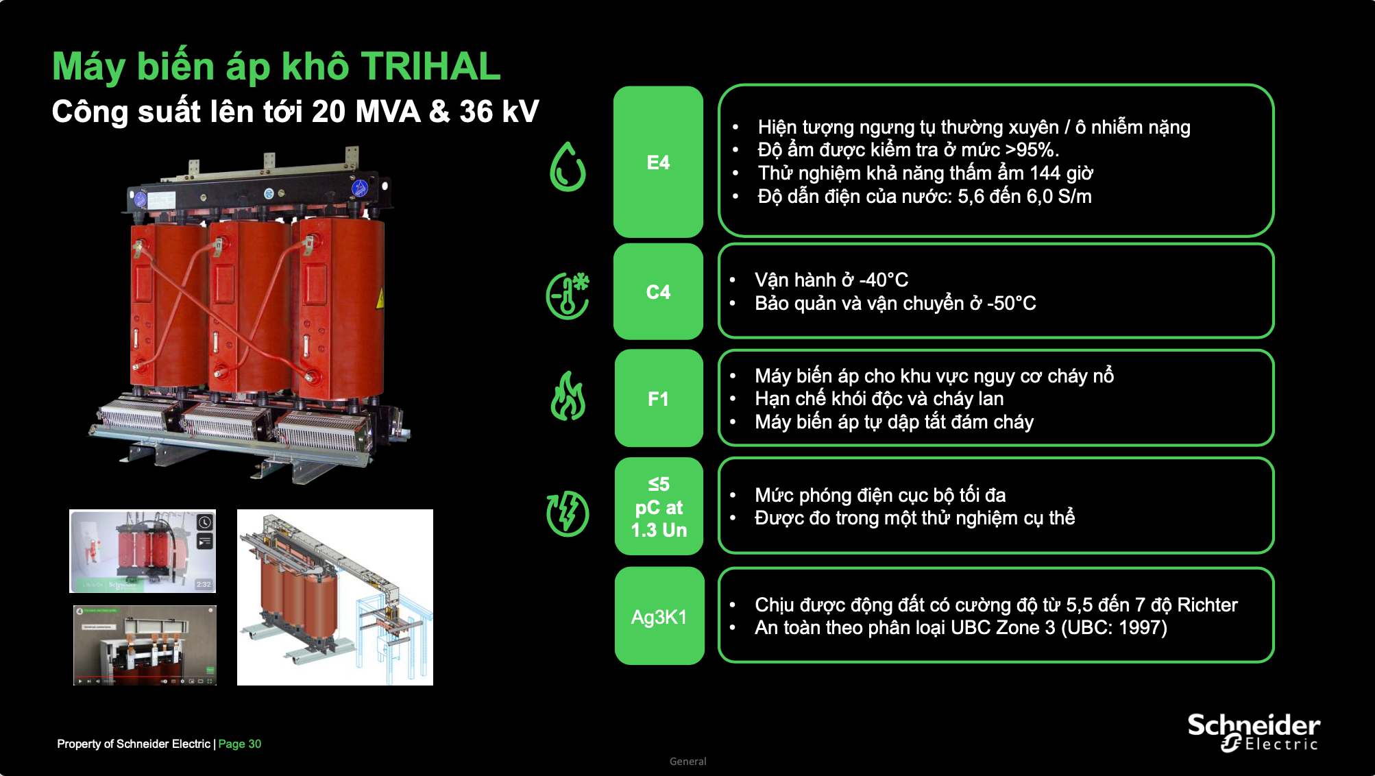 Máy biến áp khô Trihal được thiết kế để tối đa hóa an toàn cho cả con người và hệ thống: